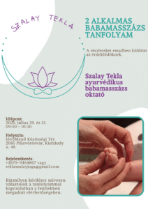 Újabb jó hirrel érkeztem. 2025. július utolsó hetében (július 29. és 31.) lesz egy 2 alkalmas (2 x 1 órás) babamasszázs tanfolyamom Pilisvörösváron, a JövőMenő Közösségi Térben.